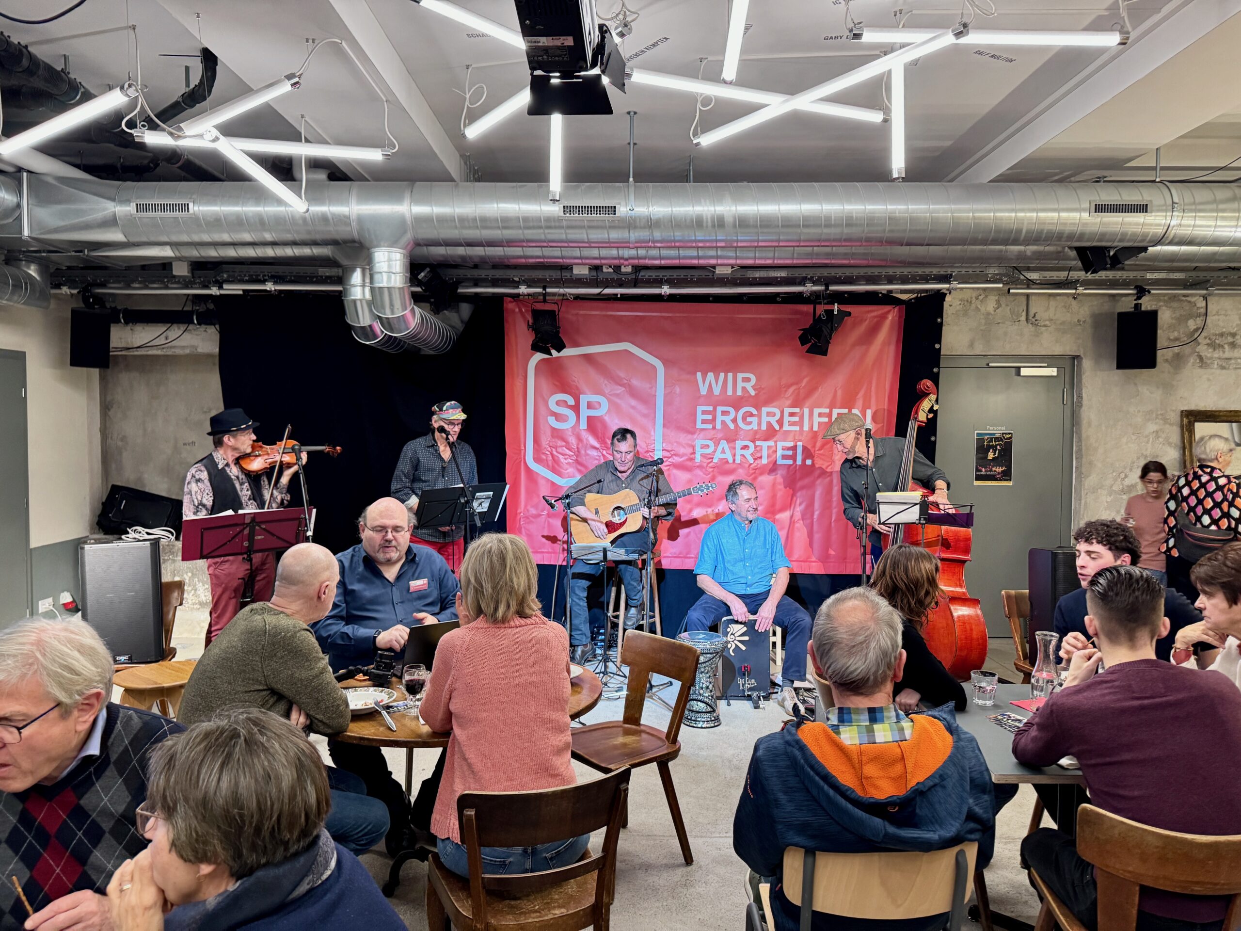 Die Band FAMBIR sorgte für die musikalische Begleitung, während ein grosses SP-Quiz mit attraktiven Preisen für Unterhaltung und angeregte Diskussionen sorgte. Das Mitbringbuffet war reich gedeckt, und auch für die Kinder gab es eine eigene Spielecke.